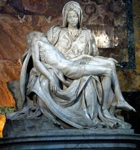 La vérité, la bonté et la beauté, unies de manière unique et créative, constituent ce que nous appelons l’art. C’est le cas de la Pietà, sculpture de Michel-Ange (+ 1564), artiste florentin aux multiples talents, aujourd’hui exposée dans la basilique Saint-Pierre de Rome. Il s’agit de la seule œuvre d’art qu’il ait signé. Il choisit lui-même le bloc de marbre à Carrare, la « capitale du marbre » en Toscane, en Italie. La sculpture exprime le lien entre Marie, qui reçoit le corps sans vie de son Enfant et le remet simultanément en toute soumission à la volonté du Père.